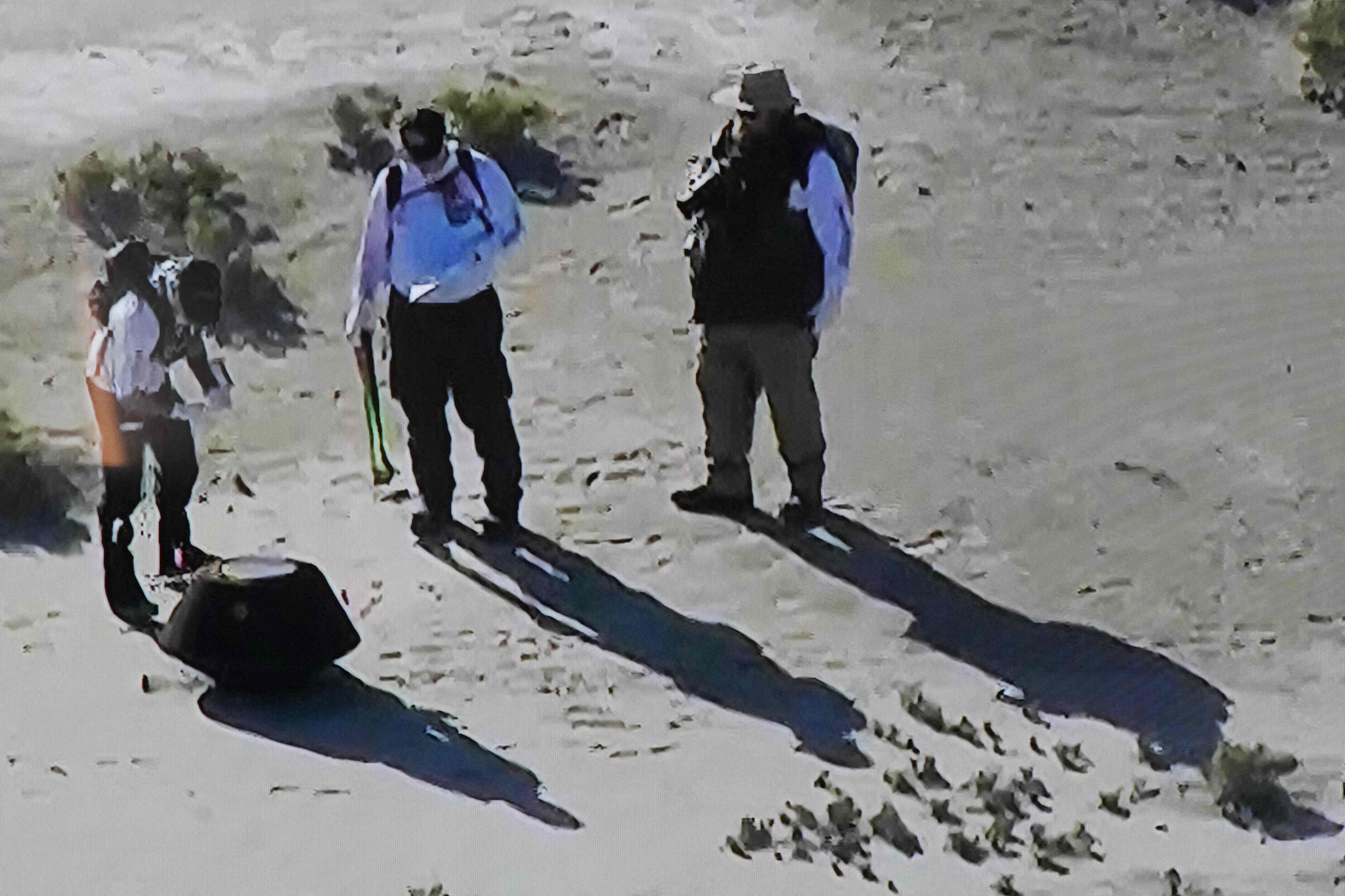 探测器成功落地后,几名NASA科研人员对探测器的气密性等指数进行分析,确保样本没被沙尘污染。(法新社)