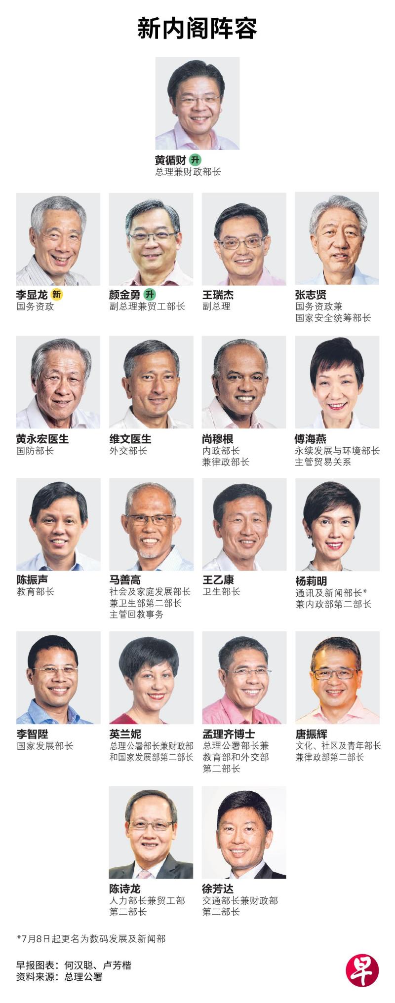 黄循财组织的新内阁变动不大,现任部长掌管的部门均未调整,他和颜金勇也将继续分别掌管财政部和贸工部。