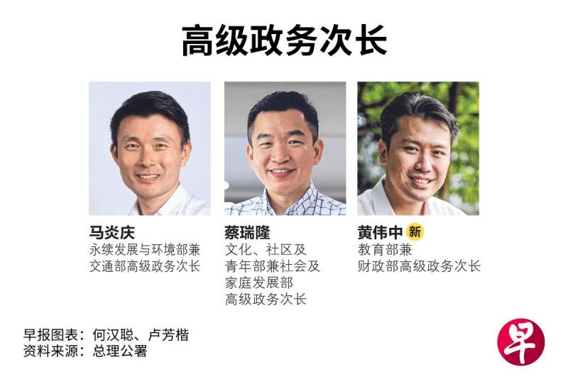 两名后座议员则成为政务官,他们是武吉巴督区议员穆仁理和裕廊集选区议员黄伟中。