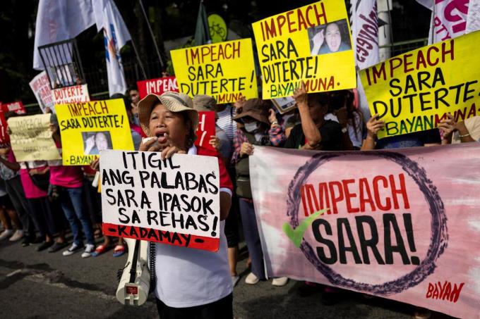 莎拉与小马可斯撕破脸后,多个菲律宾公民组织、宗教领袖及反对前总统杜特尔特的团体于去年12月2日,联合向众议院递交一项弹劾申诉,指控莎拉违反宪法、贪腐行贿、背弃公众信任,以及犯下其他严重罪行。