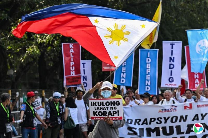 过去几个月,菲律宾爆出上千个防洪项目严重不达标,甚至出现“幽灵工程”,导致国家过去两年损失近1200亿比索。由于涉案人员众多、金额庞大,民怨排山倒海,加上近期多场强台风来袭,多地被洪水淹没,加剧民众的不满,在全国掀起反腐示威浪潮。
